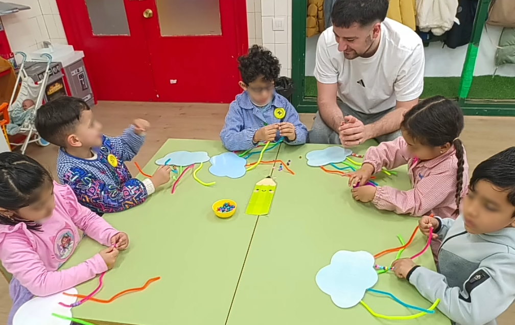 Los alumnos de 4 años trabajan en estaciones de aprendizaje grafismos creativos. ¡Qué bien se lo pasan!